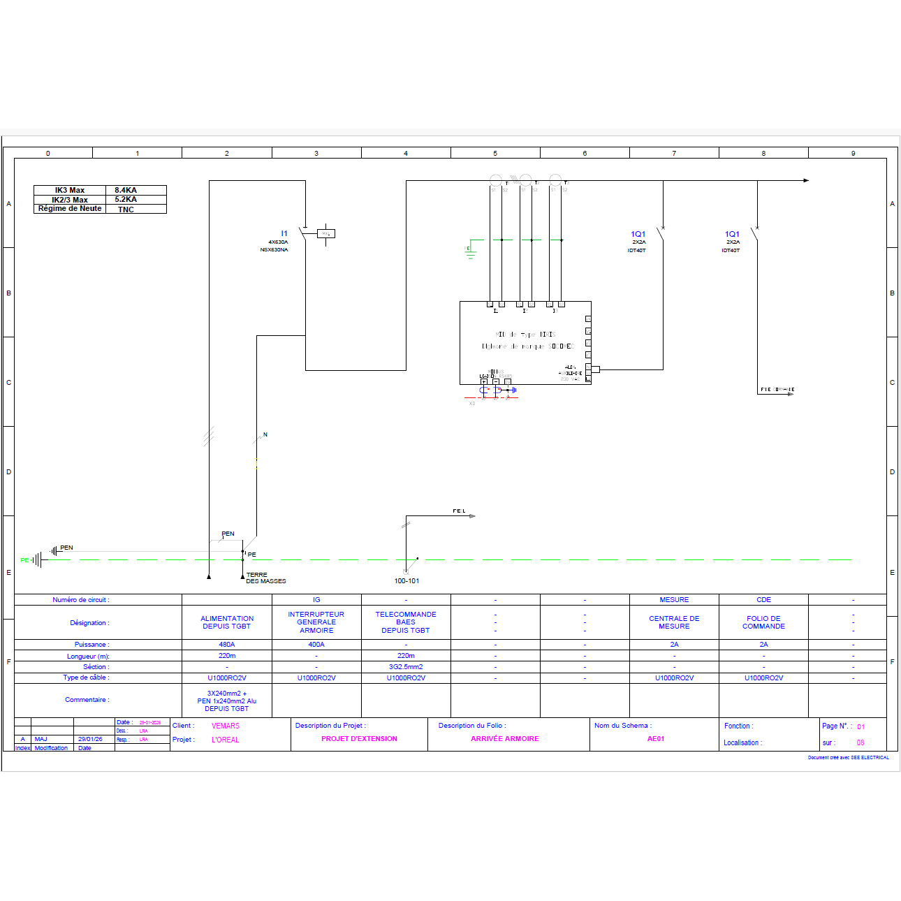 Élaboration des études d’exécution électriques comprenant les plans EXE, schémas d’armoires, synoptiques, bilans de puissance et notes de calcul, pour la réalisation d’un établissement recevant du public.