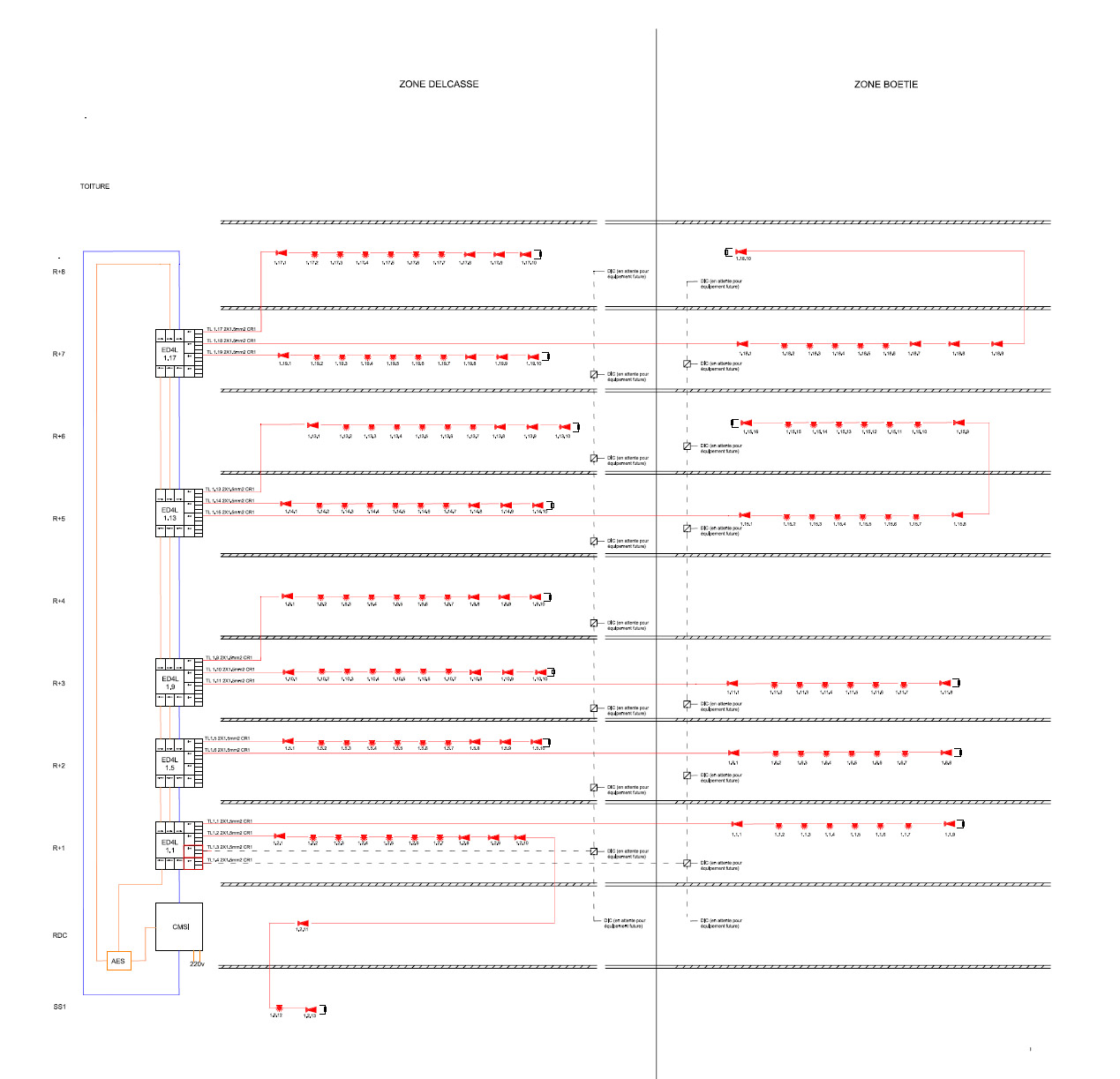 Je réalise chaque plan d’éclairage détaillé incluant l’implantation précise des luminaires et le calpinage des appareillages. Mes livrables techniques intègrent les calculs de section de câble, le repérage par étiquette des circuits et les plans d’incorporation (dalles et voiles) pour une pose sans erreur sur le chantier.